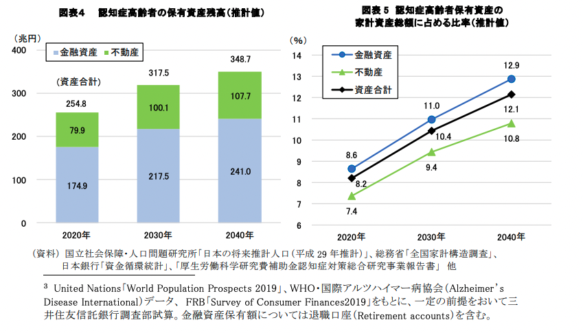 ここでいう認知症による口座凍結は、認知症の発症を機に原則として本人による口座取引が制限され、出金や送金などができなくなる状態のことです。社会問題化しており、三井住友信託銀行によれば、金融資産と不動産をあわせた255兆円が、認知症による口座凍結の状態に陥っていると示唆されています。