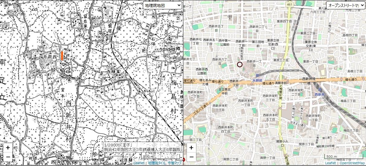 明治42年の古地図を眺めると、当時はまだ大師線もなく、西新井大師の周囲は一面の田畑に囲まれていました。それから時は流れ、大正から昭和、平成を経て、広大な初詣客を受け入れる巨大なホームを持つ現在の姿へと進化を遂げたのです。