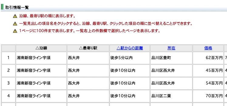 すると、取引情報一覧がページ下部に表示されます。取引情報一覧にある価格が、いわゆる実勢価格に相当します。