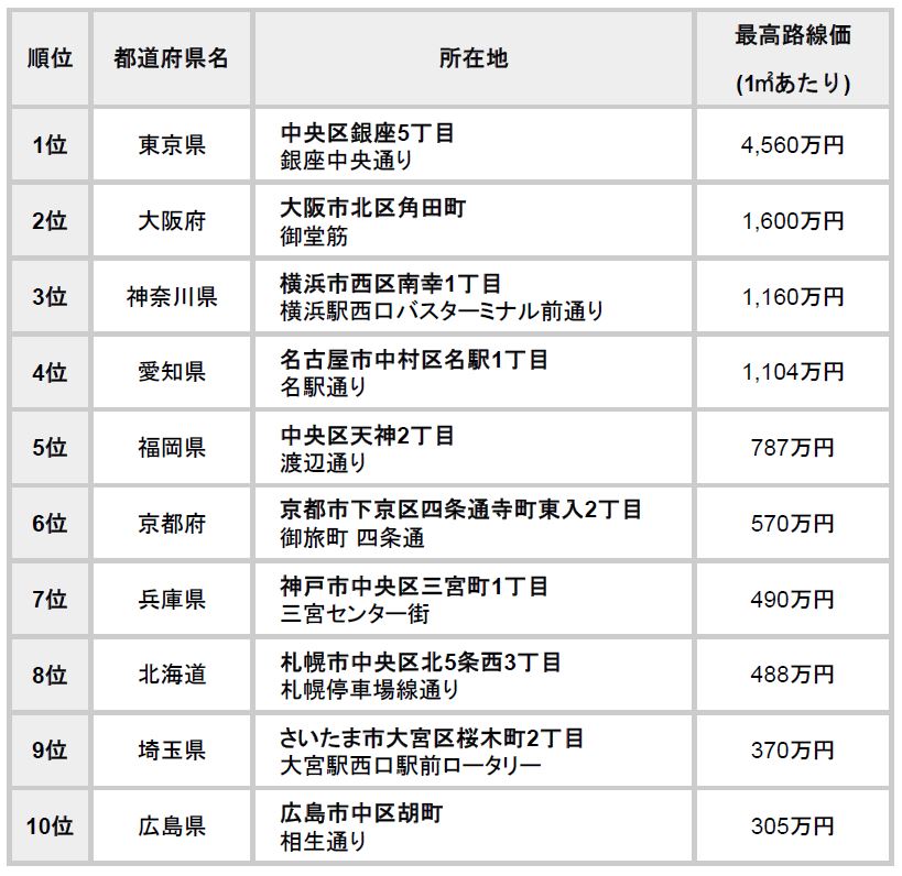 訪日外国人数の増加などを背景に全国平均が4年連続での上昇です。 -
